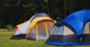 テントの入口やリビングスペースに水が集まらないよう、周囲の地形をよく観察しましょう。