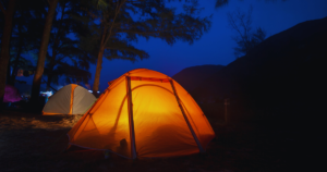 ロープやペグが張り巡らされたサイト内は、夜間になると視認性が下がります。安全な動線を確保しないと転倒事故につながります。