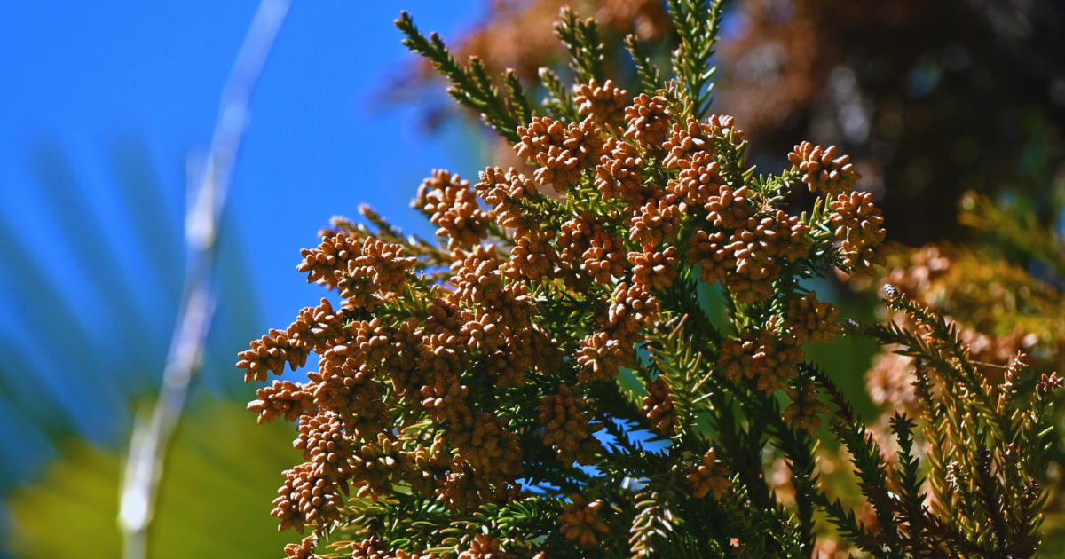 2月下旬から5月頃にかけて、スギやヒノキの花粉が大量に飛散します。特に山間部や河川沿い、林間サイトでは花粉濃度が高くなる傾向があります。